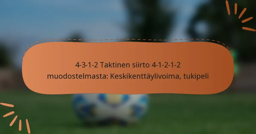 Siirtyminen 4-1-2-1-2 -muodosta 4-3-1-2 -muotoon edellyttää keskikentän uudelleenjärjestelyä ylivuotojen luomiseksi ja tukipelin parantamiseksi. Tämä muutos mahdollistaa paremman pallonhallinnan ja lisääntyneet hyökkäysmahdollisuudet, mutta vaatii huolellista suunnittelua ja toteutusta.